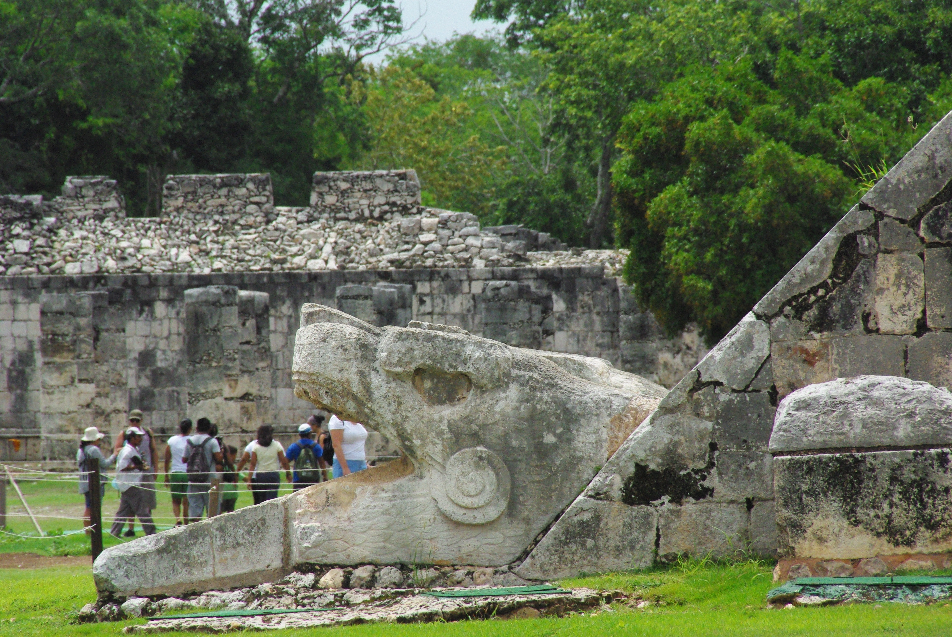 Schlangenkopf am Fuße der Kukulkan-Pyramide.